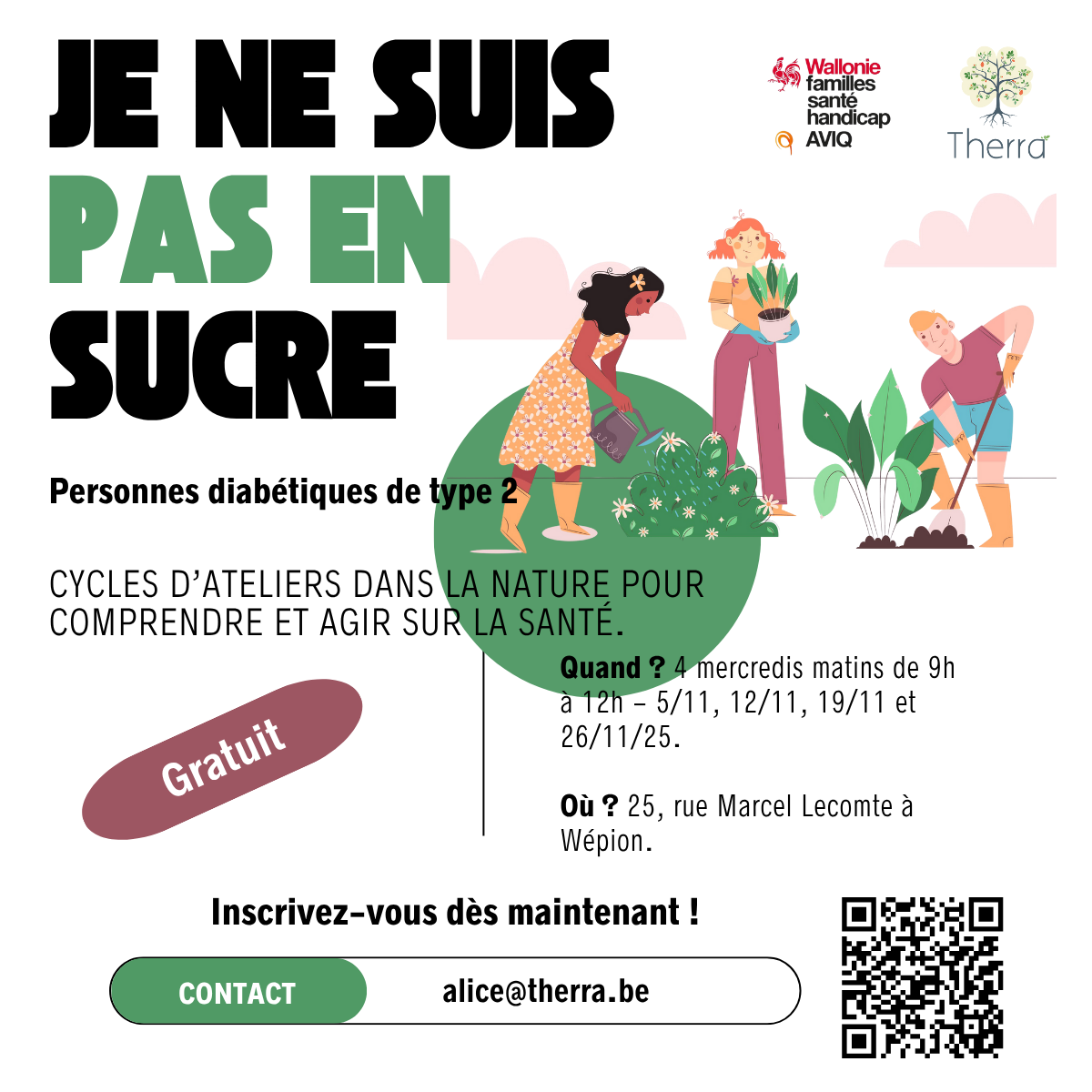 Au sein de l’asbl Therra, nous proposons un programme d’activités en lien avec la nature favorisant l’empowerment et le bien-être des personnes en situation de maladie chronique.